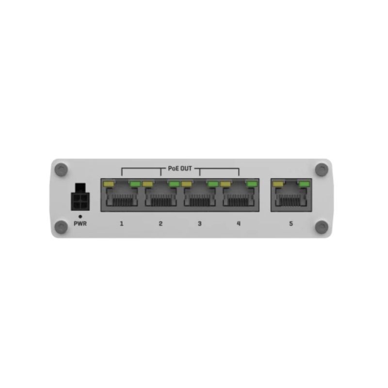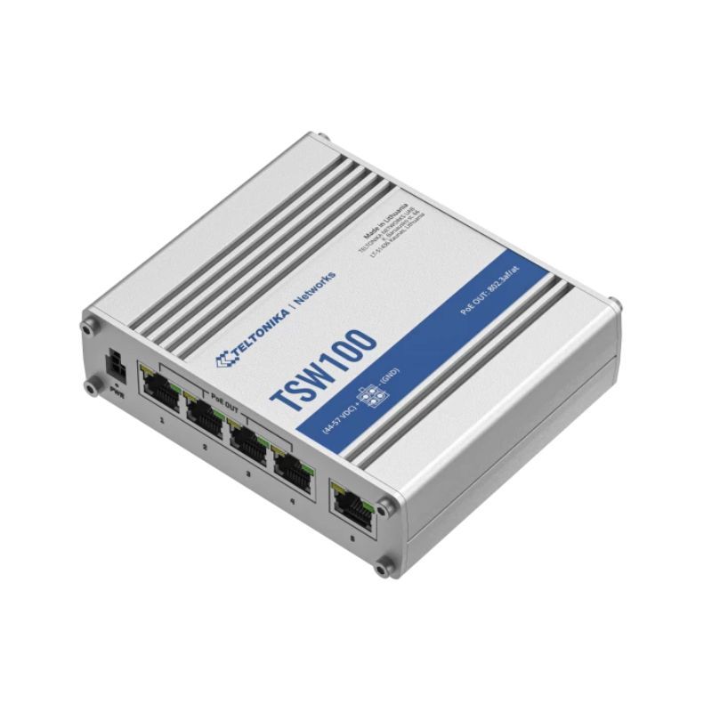 TSW100 is an unmanaged Gigabit Ethernet switch supporting Power-over-Ethernet. Classified as power source equipment (PSE), it centralizes the power supply, providing up to 30 watts per port and reducing installation effort. Five Gigabit Ethernet ports provide an economical high-bandwidth solution for a secure industrial Ethernet network.